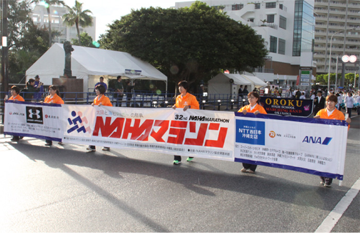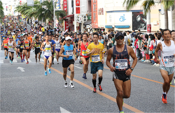 那覇市とハワイ・ホノルル市の姉妹都市提携25年記念として始まった沖縄を代表するスポーツイベント。平和祈念公園を中心に、那覇市・南風原町・八重瀬町・糸満市・豊見城市を通ります。大会当日はテレビ局による中継も行われ、沿道は応援する人で埋め尽くされます。エイサーで応援する子どもたちや、飲み物や食べ物などを用意してくれる人々など、沖縄のあたたかさにふれあえるのも大会の魅力です。