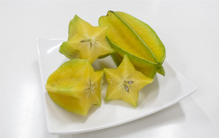 - 東南アジア地方が原産地で、カットした断面が星の形に見えるのが名前の由来。ジューシーでほんのり甘く、リンゴのようなサクサクとした食感が特徴。デザートやサラダのデコレーションによく用いられています。皮にハリとツヤがあり、重みのあるものが良いとされ、買ってすぐ食べるなら黄色く熟したものを選びましょう。