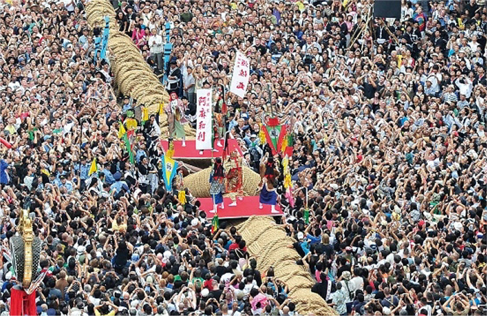 1450年ごろに慶賀綱として始まり、古い歴史文化と誇り高い伝統を有する綱挽行事。勇壮な旗頭行列が国際通りを練り歩き、世界一の大綱を使用した大綱挽が国道58号久茂地交差点にて盛大に行われます。旗頭が舞う中、老若男女、国籍問わず多くの人々が一体となって綱を引く光景は圧巻のひと言。同時開催されるRBC市民フェスティバルではステージイベントや花火も楽しめます。