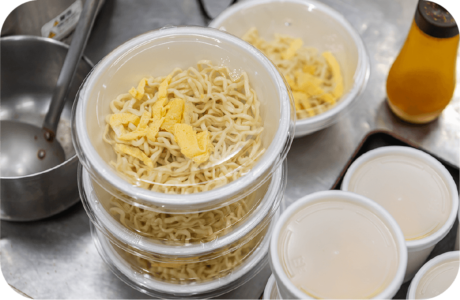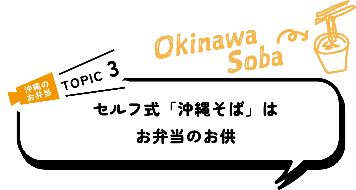 昔ながらのお弁当屋では、「100円そば」と呼ばれる、セルフ方式の沖縄そばコーナーをよく見かけます。麺が入った小さな容器に自分でそば出汁を注いでお会計へ。お弁当のお供として楽しめるサイズ感なので、見かけたらぜひチャレンジしてみてください。