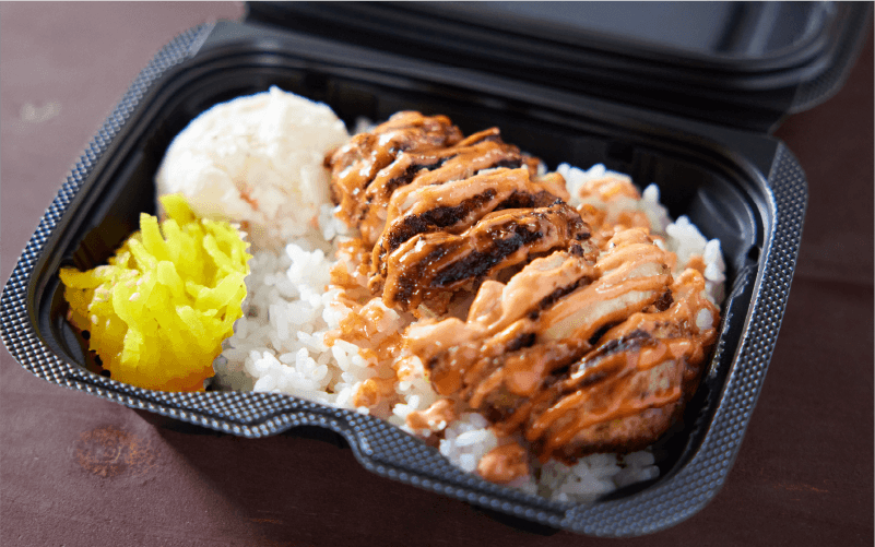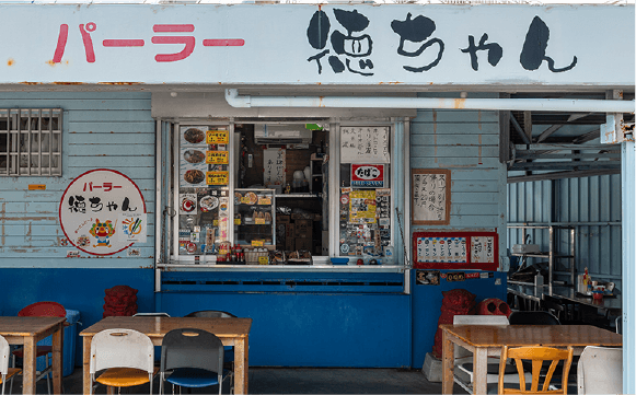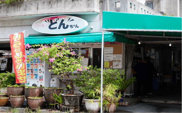 メニューは、こだわりの「チキン」をはじめ、和風テイストのオリジナル「タコライス」や、丼で提供しているピリ辛麻婆豆腐など多種多様。お店で「ティー」と称される砂糖入りの甘いアイスティーもおすすめ商品のひとつで、多くの人が購入していくのだそう。常連客から観光客まで、皆笑顔でお店を利用してくれるのが印象的です。レトロで親しみやすいどんちゃんは、“沖縄パーラー”の魅力が詰まっています。