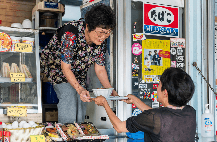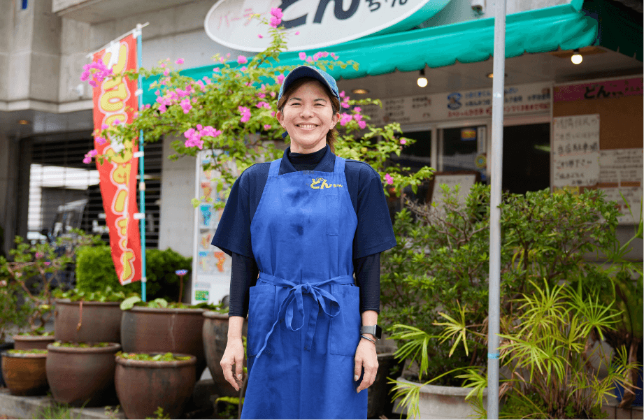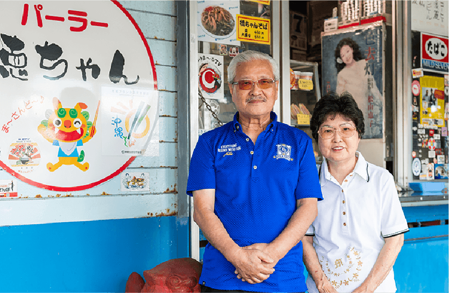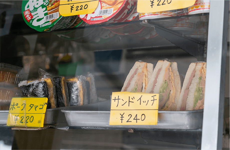 世代を問わず長年親しまれている「パーラーどんちゃん」は、地域のコミュニティともいえる人気店です。気軽に楽しめるお弁当や軽食を求めて、近所の学生や若いカップル、ファミリーが次々にやって来ます。「うちは沖縄のあんまー(お母さん)の力で成り立っているお店」と話す2代店主の内間さん。ご主人のお母さんからお店を引き継ぎ、持ち前の明るさとフレンドリーな笑顔でパーラーを切り盛りしています。