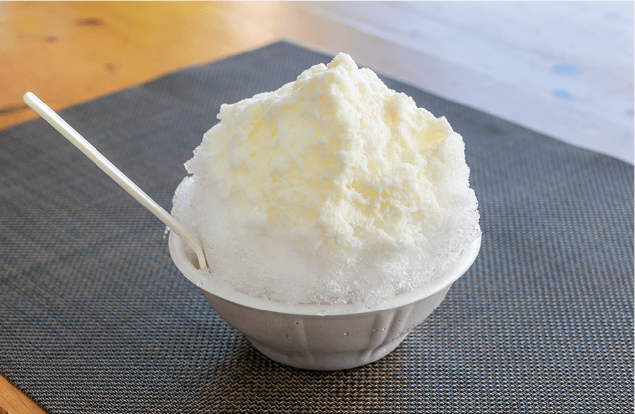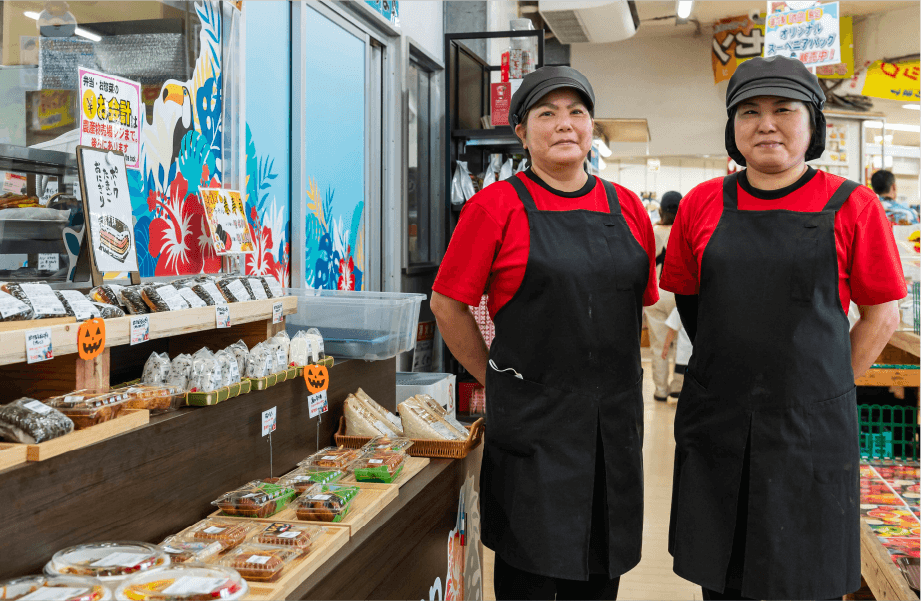 「沖縄らしさを感じてもらえるように、パーラースタッフみんなでメニューを考えています」と話すパーラーの責任者、又吉さん。冷菓コーナーではジューシーな味わいの「マンゴー果肉入りかき氷」や「紅芋アイス」などが人気です。惣菜のイチオシは4種類の「ポーク玉子おにぎり」で、休日になると一日300個も売れる人気メニューなのだとか。道の駅「許田」を訪れた際はぜひ立ち寄りたいローカルパーラーです。