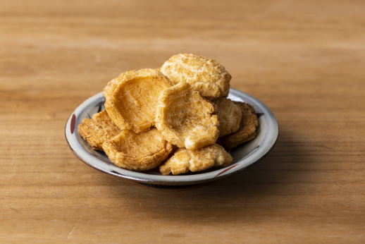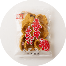 「亀の甲せんべい」は、亀の甲羅の形がかわいい定番の駄菓子。しっかりとした歯ごたえを感じられるので、1個食べるだけでも満足感があります。小麦の香ばしさと、絶妙な塩加減がやみつきになるはず。おやつとしてそのまま食べるのもおいしいですが、ビールのおつまみにもぴったりです。お土産用にたくさん買う人もいるそうですよ。