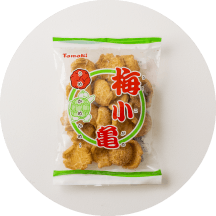 商品名に「小亀」とある通り、一口サイズの亀の甲せんべいの梅フレーバー。大きな亀の甲せんべいに比べて3分の1ほどの大きさで食べやすく、梅味なので特に女性に好まれるとのこと。小さくても歯応えはしっかりで、お茶請けにもぴったりです。おいしくてパクパクと食べやすいので、気づいたら一袋食べてしまった!なんてこともよくあります。