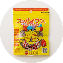 黄色に赤い文字のパッケージでおなじみの「スッパイマン」は、梅干しを乾燥させた駄菓子。一粒ポイっと口の中に入れると、じんわりと酸味と甘味が感じられます。「甘梅一番」はチャックも付いているので、保存にも便利。柔らかい食感でより甘味のある「たね無し」やパリッとした食感が楽しい「たね抜き」、乾燥梅をべっこう飴で閉じ込めたキャンディータイプなど、商品のバリエーションも豊富です。