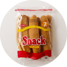 菓子パンの代表格とも言える「スナックパン」。ほんのりと甘い生地はそのまま何もつけずに食べるのが一番おいしい。慌ただしい日の朝ごはんや、部活前や塾帰り時のおやつなどでスナックパンを食べているウチナーンチュは多いはず。パンでありながら焼き菓子のようでもあるさくっとした食感は子どもたちから特に人気です。お得な7本入りのほか4本入りもあります。