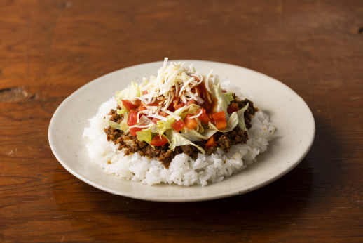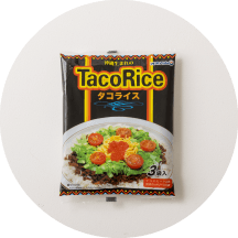 沖縄で生まれたと言われるタコライスは、タコスをアレンジして生まれた料理。味の決め手となるタコスミートのレトルト食品が、この「タコライス」。オリジナルブレンドのスパイスで煮込んだタコスミートは、スパイシーながらも食べやすい辛さ。もっと辛い方が好きな人のためにホットソースも付いています。ごはんの上に、タコスミート、レタスとチーズ、トマトをトッピングして召し上がれ。