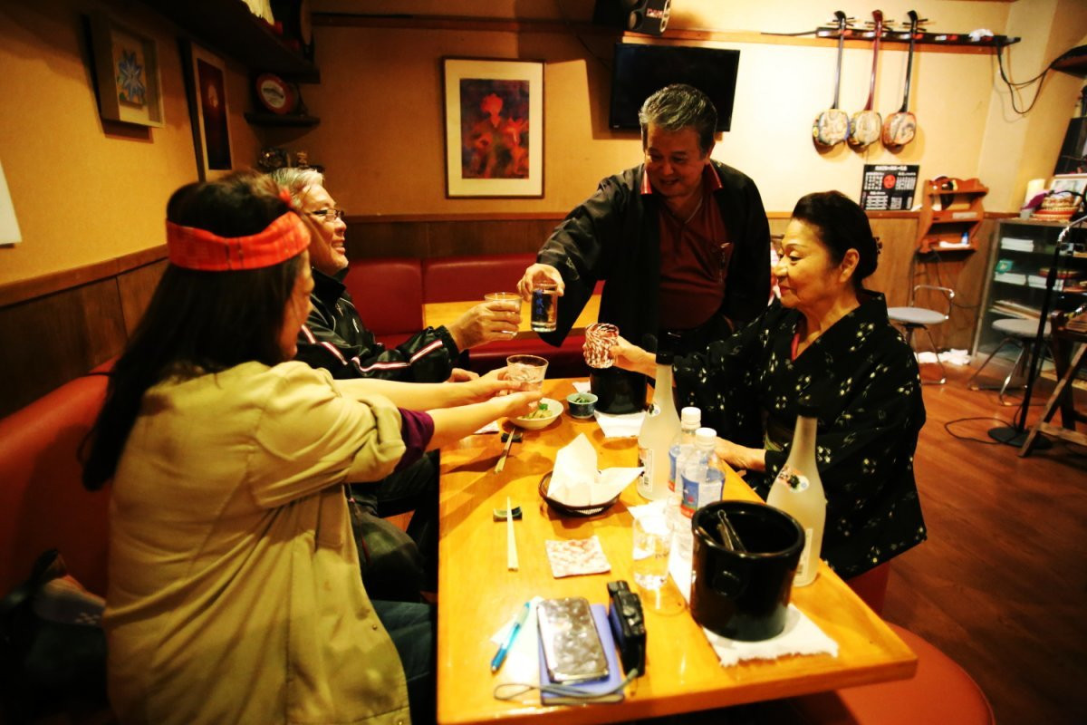 居酒屋のようにワイワイとおいしい料理とお酒を楽しみながら、気軽に民謡ライブが楽しめる。