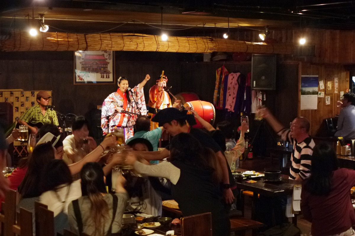 三線・島唄ライブは毎晩開催。ライブの最後にはお客様も一緒に踊り出すなど大盛り上がりに。