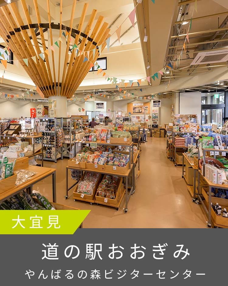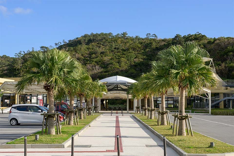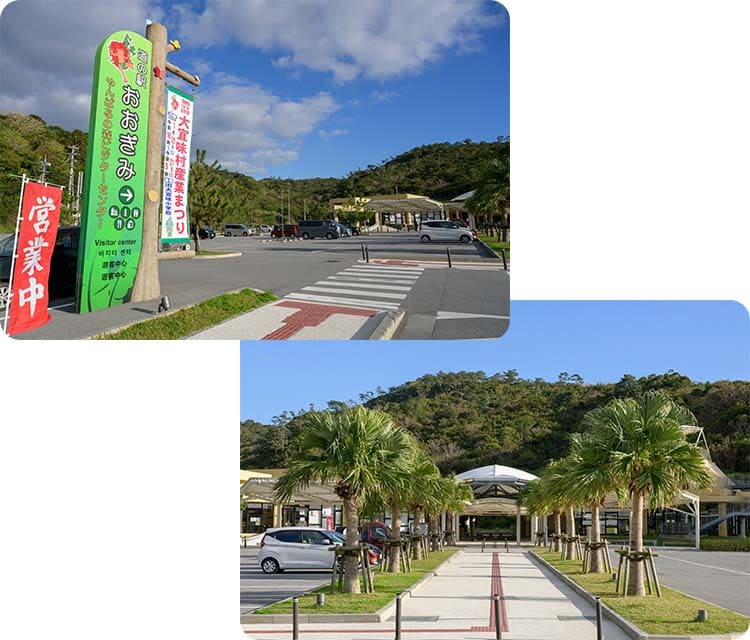 北部3村の入り口に位置する「道の駅おおぎみ やんばるの森ビジターセンター」には、大宜味村を中心に、北部でとれた野菜や果物の直売所「がじゅまる館」やレストラン、やんばるの自然を知ることができる映像ホールがあります。