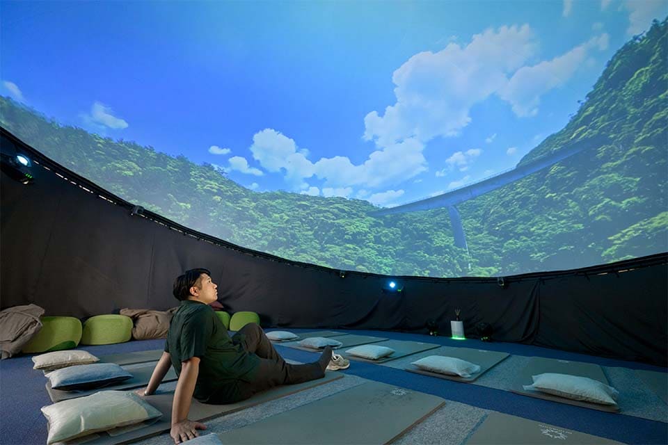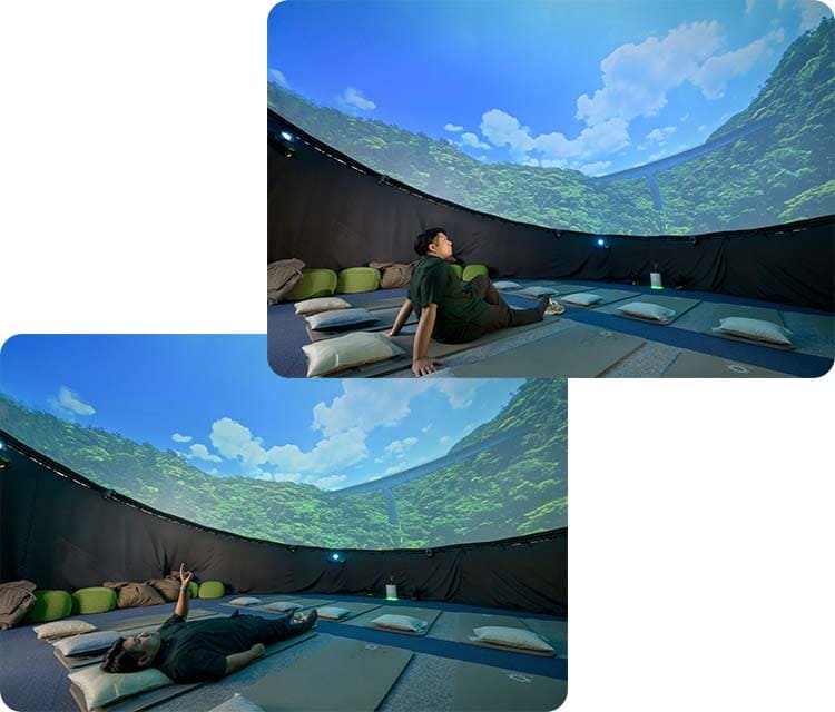 ドームシアターは半球になっており、寝転がりながら映像を楽しむことができます。