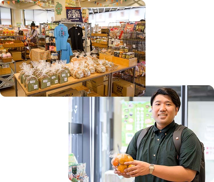 こちらでは大宜味をはじめとした北部で収穫された野菜や果物、惣菜やお弁当まで、品揃え豊富なローカルフードがならんでいます。大宜味村の特産品、シークヮーサーを使ったお菓子やジュース、女性に人気のカラキ(沖縄シナモン)のお茶はおすすめです!