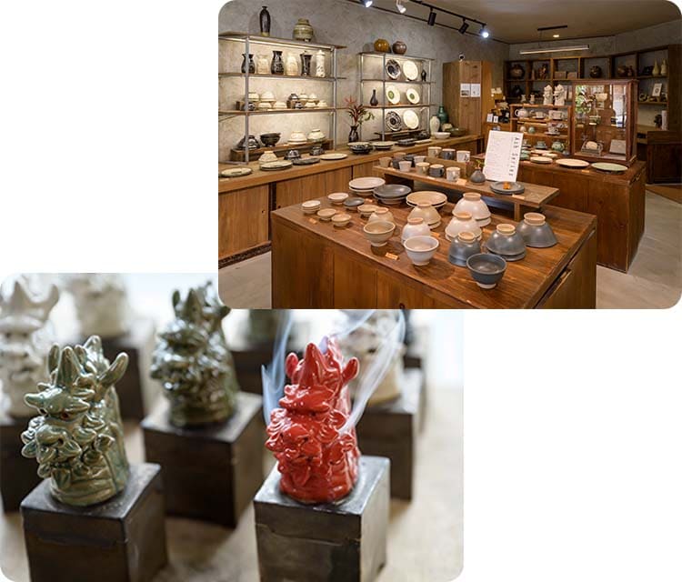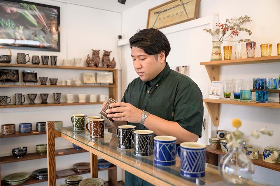 那覇市の壺屋やちむん通りには300年以上続く壺屋焼の窯元 「育陶園」が工房と店舗を構えています。伝統的な技法を用いながらも「その時代に必要とされるモノづくり」を行い、コンセプトを分けた5つの店舗を展開しています。