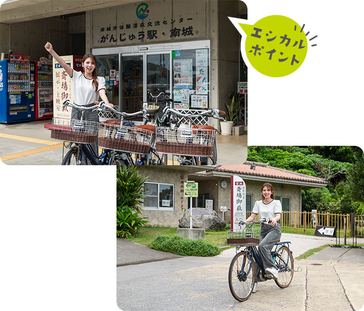 南城市観光の拠点「がんじゅう駅・南城」では、1時間から電動アシスト自転車を借りることができます。