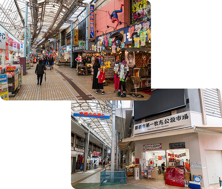 那覇市国際通りのほぼ真ん中に、お土産店やブティック、製菓店など約60店舗の多様なお店がひしめく「市場本通り」の入口があります。ノスタルジックな雰囲気を感じるアーケードを進むと沖縄観光の定番スポット「那覇市第一牧志公設市場」へと続き、国際通りとはまた違った雰囲気を楽しむことができます。