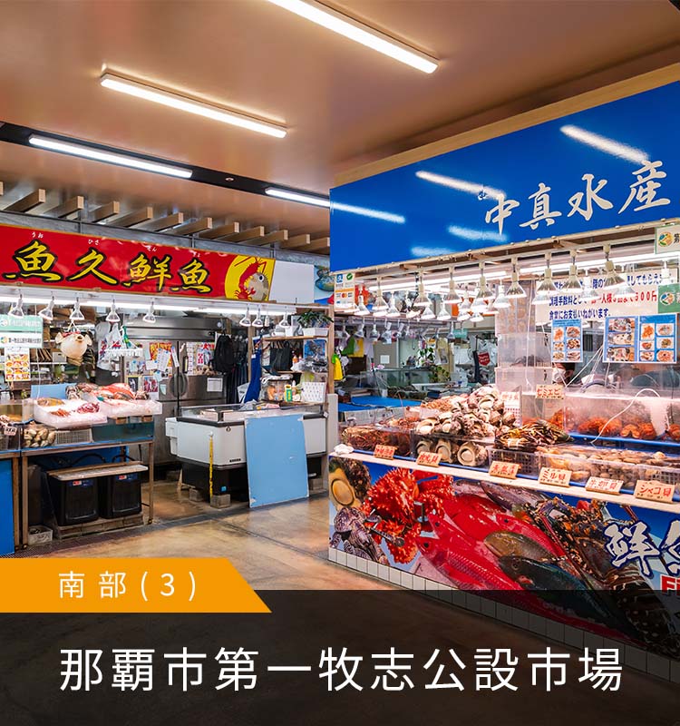 精肉店では「チラガー」と呼ばれる豚の顔の皮や、豚の足先「チマグゥー」、豚の内蔵を綺麗に処理した「中身」など県外客が驚くようなお肉が店先に並び、「豚は鳴き声以外全て食べる」と言われる沖縄の「豚食文化」を感じることができます。鮮魚店では、鮮やかな色をした「イラブチャー(ダイ科の魚)」や「アバサー(ハリセンボン)」と聞きなれない沖縄の方言で慣れ親しまれている魚たちがずらり。