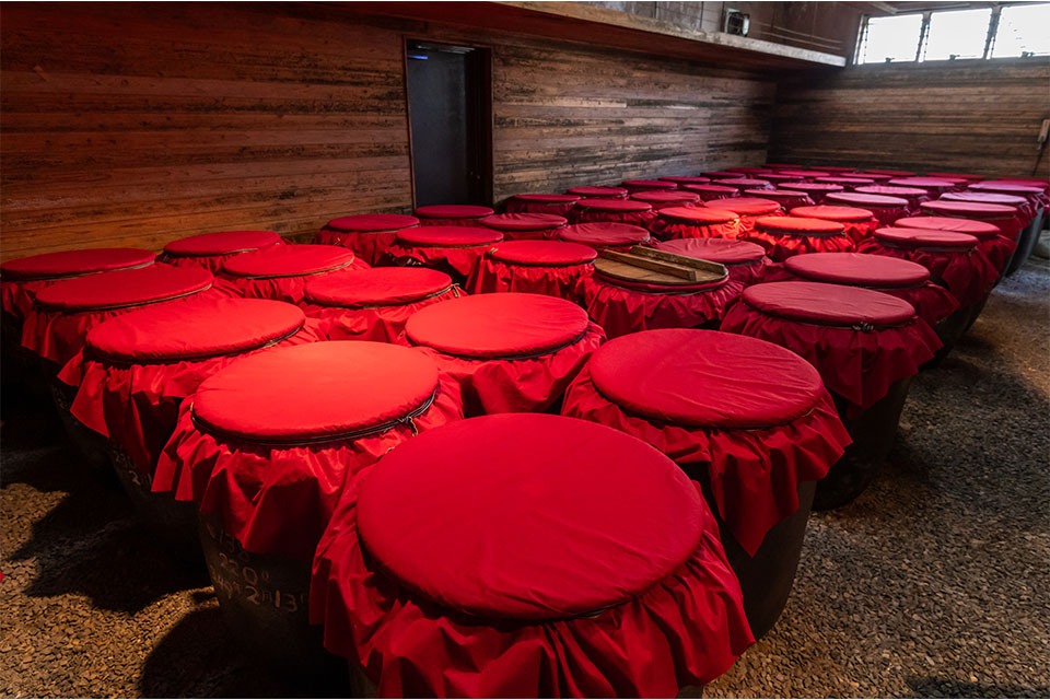 見学の最後には「試飲」を楽しむことができ、「飲み比べてみてください」と案内いただいたお酒はおすすめの新酒や古酒。古酒とは3年以上貯蔵された泡盛をさし、新酒と古酒を比較しながら楽しめます。同じ度数の古酒でも、3年古酒の「瑞泉 青龍」はすっきりとした味わいに、ピリッとくる後味。それに対し10年古酒の「瑞泉King crown」はまろやかな舌触りに驚きます。泡盛の貯蔵はステンレスタンクか、甕に入れますが、この貯蔵方法によっても味に変化があるんだそう。「ステンレスタンクは、甕ほど味に影響することがないので、比較的スッキリとした味わいに。甕だと土の成分も入るので口に残る余韻をしっかり感じることができます。」