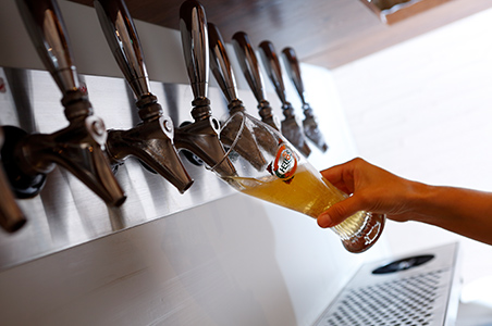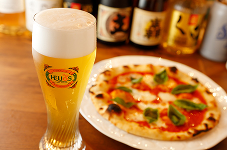 国際通りにある「バッカスの胃袋」は、「ヘリオス酒造」直営のビアバー。ブルワリー直送のクラフトビールを“生”で飲ませてくれる。ビール通のスタッフにアドバイスをもらい、ゴーヤーDRYに窯焼きピザを合わせてみた。この個性派ビールは、王道ピザのマルゲリータとの相性もばっちり。