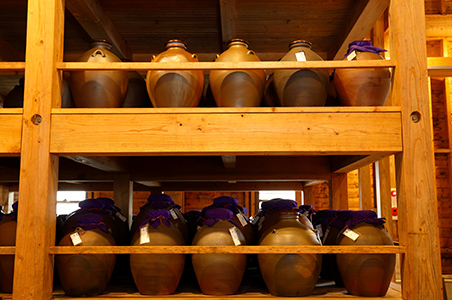 苦手だった泡盛も進化していると聞き、酒蔵を見学したくなって「くぅーすの杜 忠孝蔵」へ。酒蔵では、スタッフの案内で泡盛づくりや陶器工場の見学ができた。