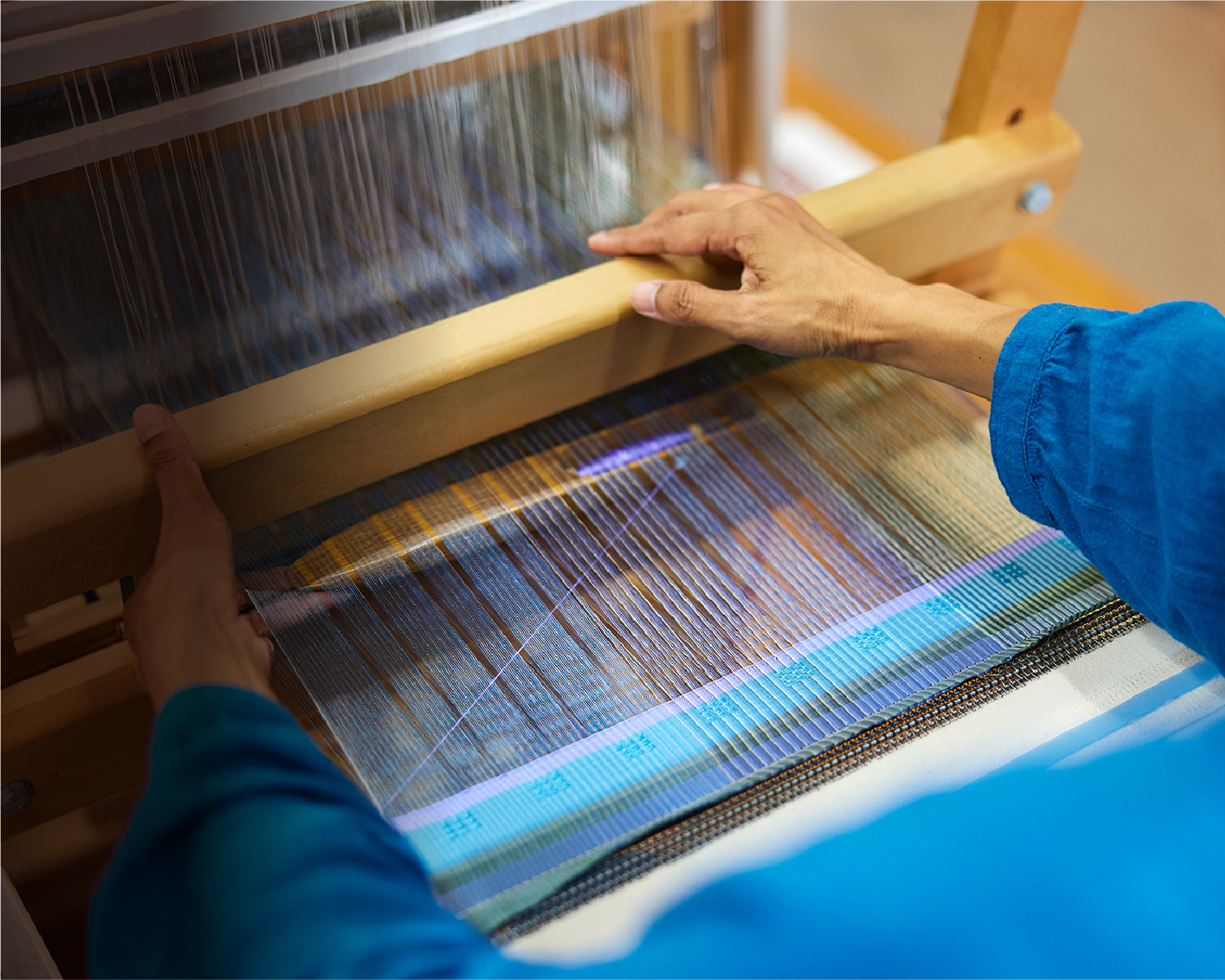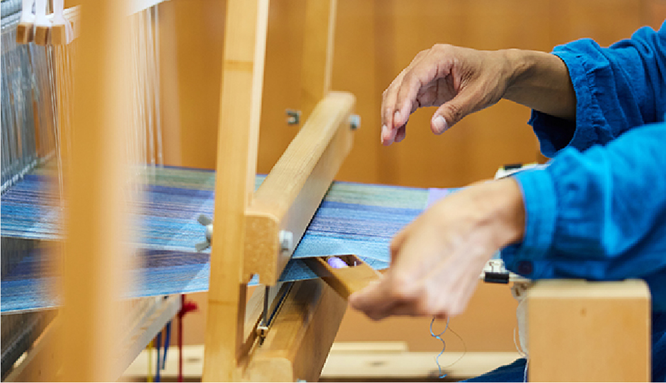紋織から絣に至るまで多彩な織りが特徴の「首里織」。「首里染織館suikara」が実施している「首里織体験」では、絹糸の花織を織ることができます。「那覇伝統織物事業協同組合」所属の熟練の織り手が講師として付き、体験中はマンツーマンで丁寧にレクチャーしてくれるため、「機織り機の前に座るのは初めて」という方でも安心して取り組めるのが魅力です。