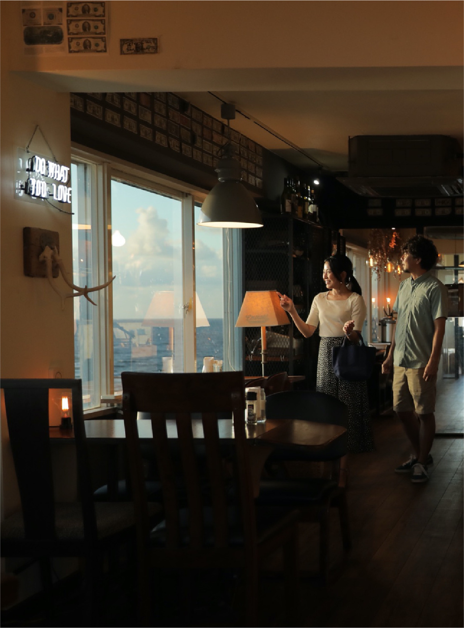 夕陽のパノラマも贅沢に、県産牛も味わえるステーキハウス。