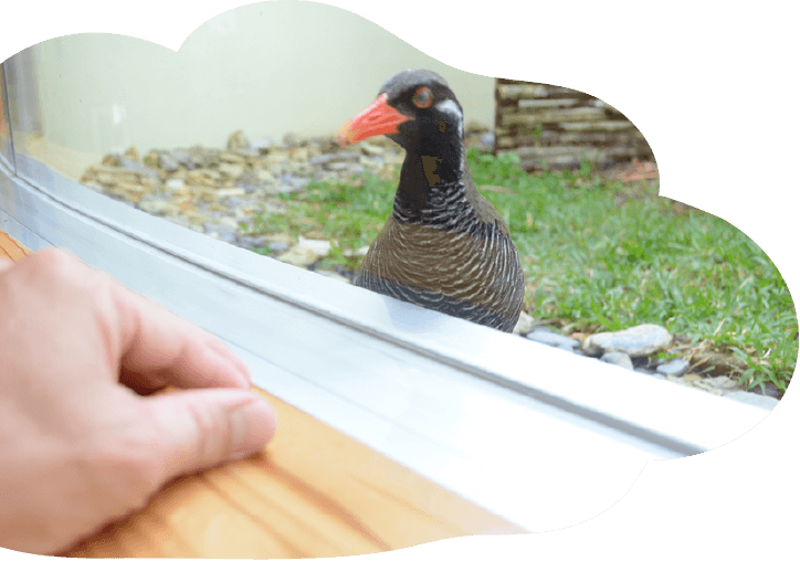 館内で育てられたヤンバルクイナの「クー太」は、とても人懐っこく、餌を食べたり、水浴びをする姿を間近に見られるほか、時には来館者の前に来て顔をのぞきこんだりするしぐさが可愛らしく、訪れる人みんなをとりこにする人気者。ヤンバルクイナの生態や生息環境が学べる資料ブースのほか、ショップでは、さまざまなヤンバルクイナグッズが販売されています。