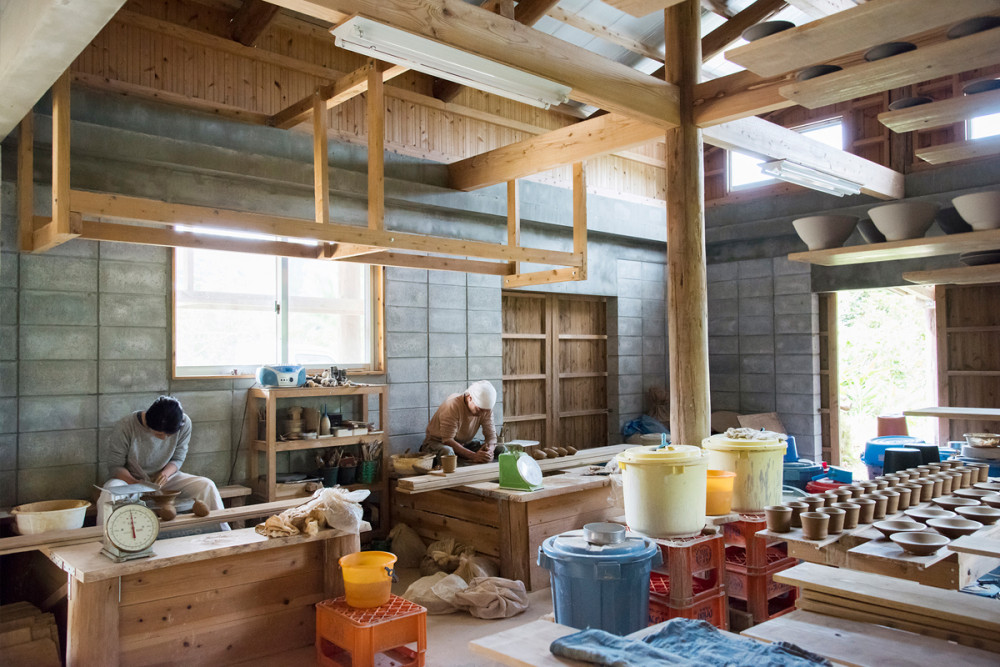 宮城さんは25歳のときに、読谷村で窯を構える壹岐幸二さんの工房に入り、陶芸の道に飛び込んだそう。