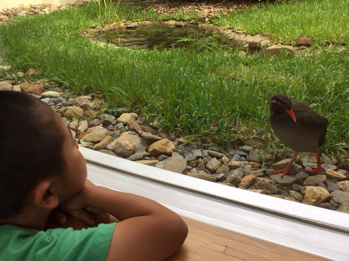 やんばるの野生動物と言えばもちろんヤンバルクイナ!ではありますが、よほど運が良くなければ、大自然の中でその希少な姿は目撃できません。そこで、ヤンバルクイナがやってくるポイントをガラス越しで間近に観察できる施設があるんです!