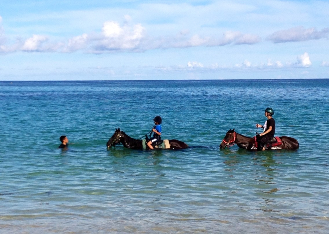 穏やかで優しい2頭の賢いサラブレッドに触れ合いながら、美しい沖縄の自然を楽しむことができます。