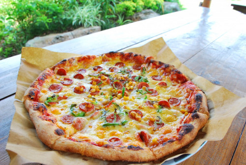 昔から地元民からも支持される人気店。手作りのできたてピザは、中サイズで30cmもあるほどボリューミー。