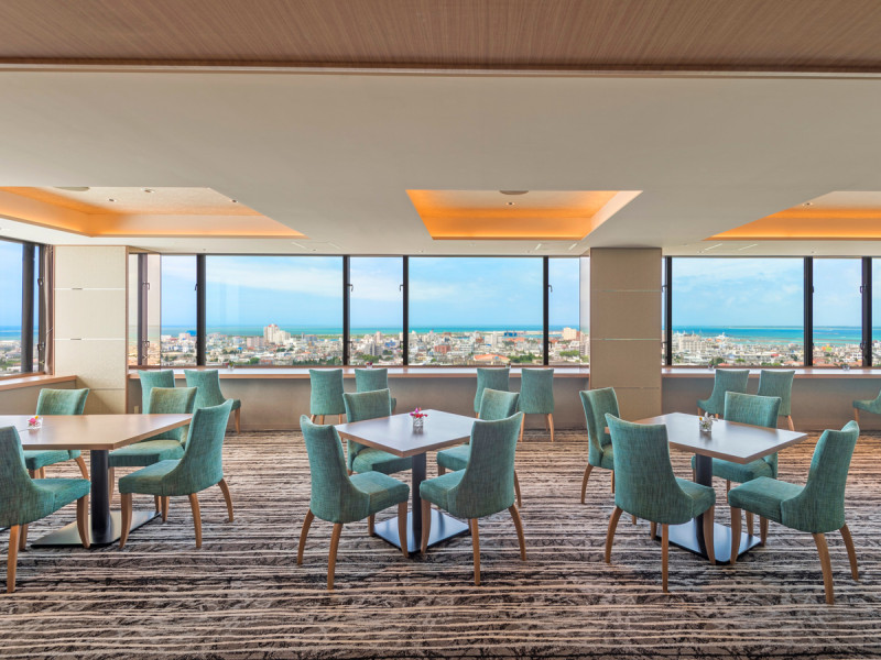 カフェタイムでは、街並みの向こうに海を行き交う船と八重山の島々をゆっくり眺めながら、季節でメニューが変わるランチプレート(11:30~14:30L.O.)、パティシエ作の色とりどりのスイーツをご堪能いただけます。