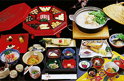 古来から伝わる琉球料理の雅を忠実に再現し、その洗練された琉球料理は美しく、味はとても繊細。宮廷のあでやかな紅型衣装を身にまとい繰り広げられる、重厚な古典舞踊と雑踊りの数々。長寿県沖縄が育んだ琉球料理と華麗なる琉球舞踊をお楽しみください。※写真はひるぎコース