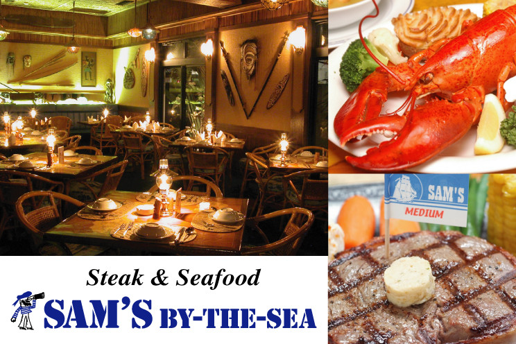 地元客にも観光客にも人気の「サムズレストラングループ」の一つ。サムズバイザシーでは、生きたままアメリカよりジェット空輸で送られてくるアメリカンロブスターが自慢の一つ。その他甲殻類・近海魚介類など、すべて新鮮厳選食材や季節ごとに変わるシェフのオススメメニューが魅力。船をイメージした内装とポリネシア系の落ち着いた店内は、エキゾチックな風情溢れます。テーブルにはゆらめくランプとムーディーなハワイアンBGM。今夜は異国情緒に酔いしれませんか?
