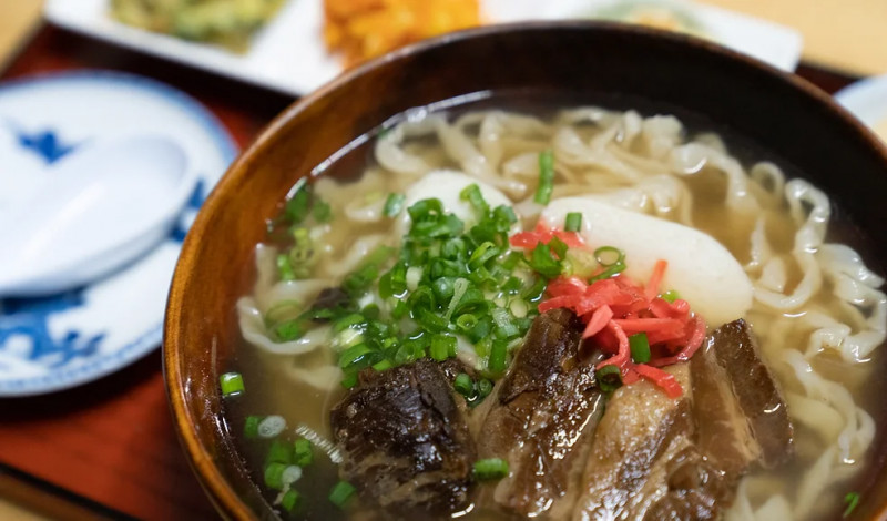 がじゅまるの灰を水にひたし、うわずみをとって小麦粉を練り手打ちで延ばし麺を作ることで、こしのあるツルツル感のある面が食できます。