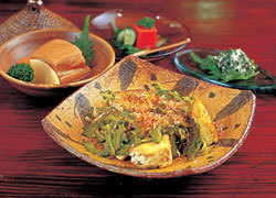 沖縄の織物、陶芸などの工芸が並ぶ店内は文化の香り高い落ち着いた雰囲気。料理は洗練された琉球料理。