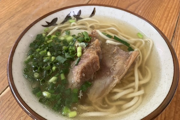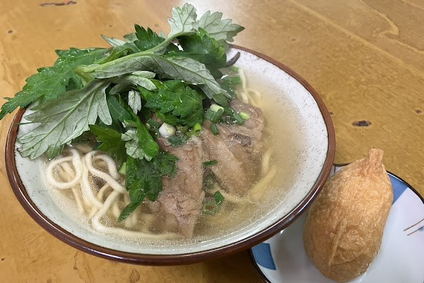 「亀濱製麺」の直営店。麺がツルツル、シコシコでさすがは亀濱の麺、と思える美味しさ。沖縄そばはトンコツとカツオで取った企業秘密のあっさりスープ。とろけるような三枚肉と一緒になって味のハーモニーを奏で、食べた後まで口の中に美味しさの余韻が残る。