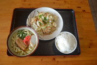アワセそば食堂は沖縄市泡瀬の地名から名づけられたそば屋です。毎日地元客が多く、子供からお年寄り、地元に支えられているそば屋です。麺は店舗で自家製麺で、沖縄そば以外にも、おかず、フーチャンプルー、ゴーヤーチャンプルーなどチャンプルーも提供しています。
