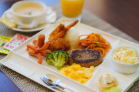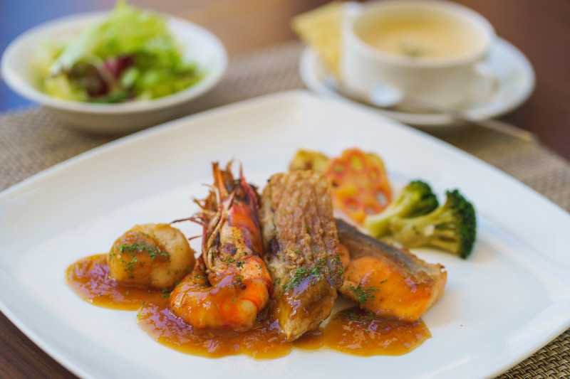 光がふりそそぐガーデンテラスに面した開放的なオールデイダイニング「オーシャングリル」では、こだわりの新鮮食材を活かしたアメリカンテイストのグリル料理を中心に、子どもから大人まで楽しめるバラエティー豊かなメニューがテーブルを彩ります。