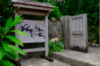 宜野座ICから国道329号を南下し、金武町に入って2つ目のバス停(中川→銀原)を山側に右折(バス停の手前の脇道です)。看板を目印に小道を10m位上がって最初の角を右折です。