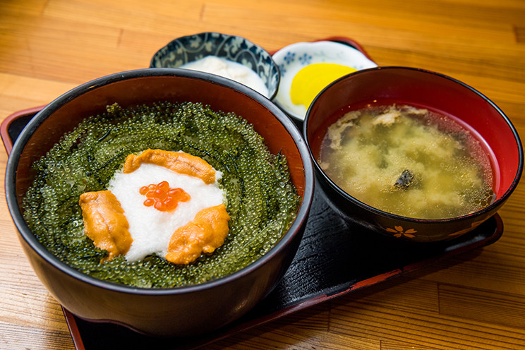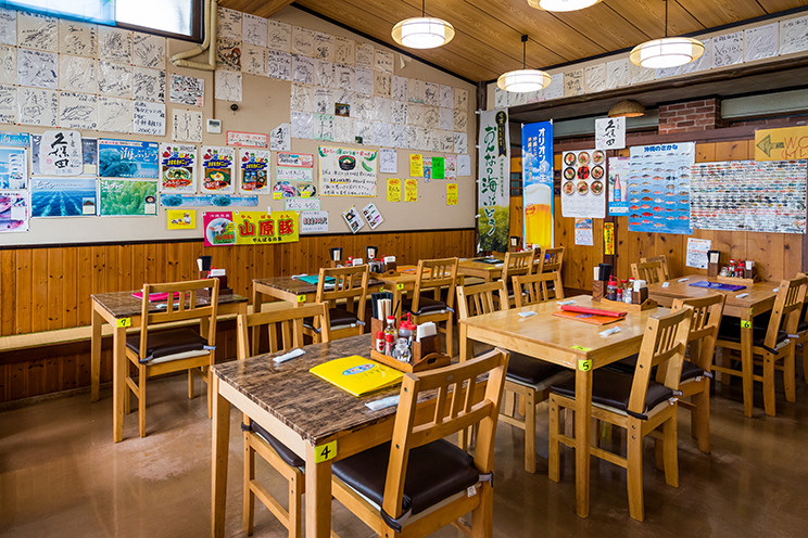 平成6年にオープンした当初は、海ぶどうはお刺身やおつまみとして扱われていた食材。天皇杯を受賞した恩納村海ぶどう生産部会の海ぶどうとの出会いと様々なインスピレーションから生まれた「海ぶどう丼」は、プチプチした食感や磯の香りが楽しめる人気メニューです。他にも海ぶどうがのったゴーヤーラーメンや、海ぶどう丼に沖縄そばやテビチの煮付けがついた定食など、沖縄の自然が育んだバラエティー豊かな美味しさが楽しめます。店内はテーブル席やカウンター席のほか、お子さま連れに嬉しい座敷もあります。