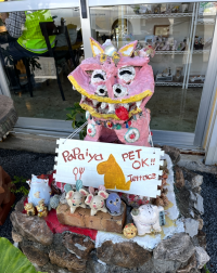 入り口にある カラフルなシーサーは オーナーの手作り。
