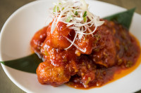 沖縄県庁近く、那覇の中心街にてゆったりとした時間を楽しめる居酒屋では、定番の居酒屋メニューからラフテー、チャンプルーまで“これぞ沖縄!”というボリューム満点の沖縄料理が楽しめます。人気メニューの一つである「揚げてびちのチリソース」は、プルプルジューシーなてびちと甘辛スパイシーの組み合わせがクセになるおいしさ。カップルからファミリー、大人数のグループでもOK。アクセス良好、時間を気にせずくつろげる隠れ家的居酒屋です。お得なタイムサービスメニューも実施中。