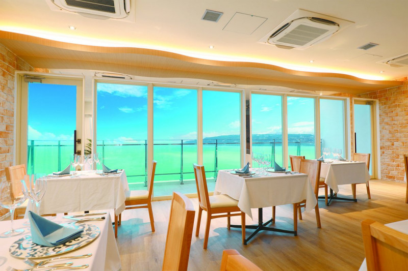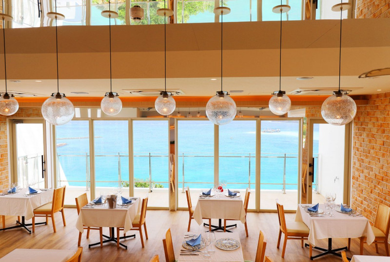 スカイブルーの美ら海と古宇利島を臨む絶景と沖縄の旬の食材をふんだんに使った南国料理を味わえる!