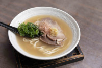 首里城のすぐ近くにある沖縄そばの店「首里ほりかわ」です。「ほりかわそば」は、丸一日かけて煮込んだ豚骨スープに、特製豚ロースをトッピング。麺も自家製の自慢の一品です。ぜひお立ち寄りください。
