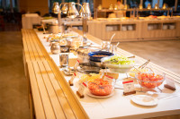 潮風を感じるテラスでのブレックファーストは格別なひとときをご堪能いただけます。またこの度、シーサイドレストラン「谷茶ベイ」は店内をリニューアルいたしました。広々と見渡される店内、バイキングもご利用しやすくなり素敵な朝食レストランに生まれ変わりました。シェフが目の前で作るホテルメイドのオムレツは、たっぷりとチーズを包み焼いた、フワフワとした食感にトマトソースを添えると絶品です!フルーツも充実しており、大変満足できる朝食バイキングとなっております。