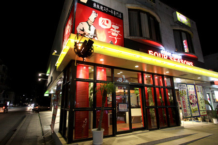 沖縄鉄板焼きステーキハウスの老舗「四季」。この店の一番のおススメはやんばる和牛のヒレ・サーロイン。通常のステーキは1750円というリーズナブルな料金から楽しめる。目の前で食材と調理器具をジャグリングのようにパフォーマンスをしながら焼き上げる。一流シェフの見事な技と味を満喫できる。