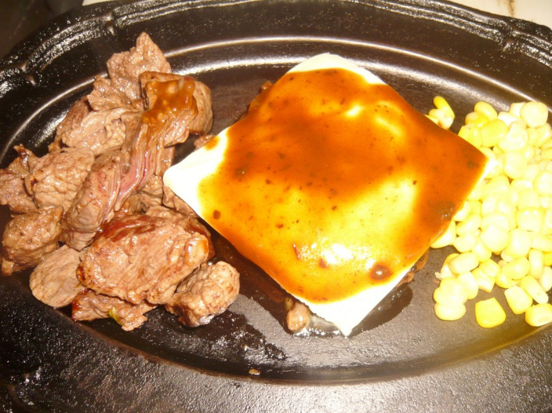 カウガールセット (サイコロステーキ150g&ハンバーグ100g) \2,200