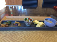 沖縄名物の高級魚ミーバイをはじめ、沖縄県産の新鮮野菜や魚介を、四季折々の和の料理として楽しめる【味 らく田】。本島北部の豊かな自然を満喫しながら、夕朝食付きで宿泊できる割烹オーベルジュです。もちろん食事だけの利用もOKで、炊き方にこだわり、お米のおいしさを余すところなく引き出した「土鍋ごはん」付きのランチメニューやコース料理を味わえます。料理に合う泡盛や芋焼酎、日本酒も種類豊富に用意されており、お気に入りの一杯に出会えます。お店の2階には宿泊できるお部屋もありますので、心ゆくまで盃を傾けられます。忙しい日常からしばし離れてリラックスできるお店です。