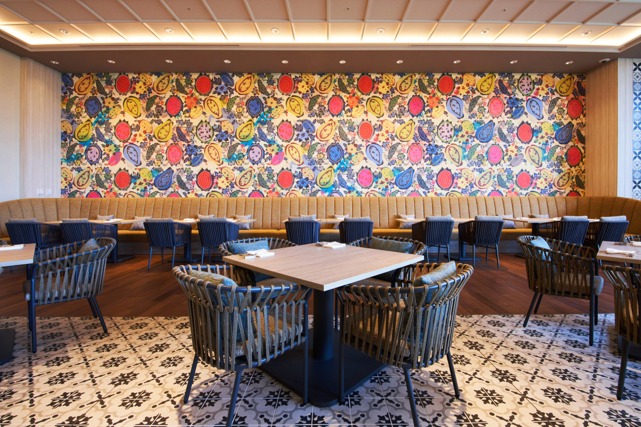 「オール デイ ダイニング ジノーン」は沖縄の方言で宜野湾市を意味する言葉で、ねたてのまちと共存するレストラン